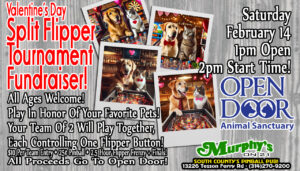 Celebrate Valentine’s Day with Open Door Animal Sanctuary at a Split Flipper Pinball Tournament Fundraiser at Murphy’s on 21—South County’s pinball pub!