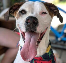 Why live a boring life? I'm just here to have fun! I believe that life is meant to be enjoyed. And, if you feel like you've lost a little bit of that spark, well... I'm here to help! Gage, here- at your service! I'm 76 lb of pure sunshine. I love doing joyful zoomies around the yard, especially if you do them with me! I'll run and play and chase a toy and then, suddenly, stop and flop belly-up at your feet or in your lap. Belly rubs are one of my very favorite things. I'm an aspiring lap dog who just wants