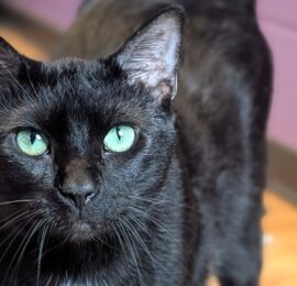 People wanna know, in the shelter with a whole buncha cats, how does the staff tell them apart when they're the same color? Like, how do they know that I'm Frank and not Catlin or Jarvis or Gustav or Roz or any of the others? Well, sometimes, my lips get stuck in my teeth. And I hold my tail folded over my back like a squirrel! But that's not the only way you know it's me. I live in the senior cat section even though I'm only a year old, so when you see a black cat sprinting joyfully back and forth, chasing