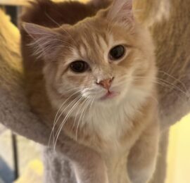 My name is Marsh, I'm six months old, and I've heard I'm a "special boy" and I've often wondered what it is about me that makes people say that. Is it that I'm the softest little dreamsicle cloud you've ever had the pleasure of touching? Or that I'm totally fearless, super-outgoing, incredibly charming, and love to play? I mean, I live with a gigantic dog in my foster home and think he's the best thing since Neil Diamond. I'm great with other cats and kids. I'm an expert at turning strangers into friends. I charmed the vet clinic staff so