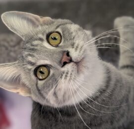 Parkour! Parkour! Hardcore parkour!My name is Mitty! You can't see my white mitts because I'm using them to cling onto this here cat tree, but trust me: they're there and they're marvelous. I'm seven months old, male, and looking for a home!So, I know there are plenty of people out there who want a cat who mostly just loafs around and like... that's cool. You do you, boo. But I'm not for those people.I'm for the people who watch videos of cats making the most of their cat jungle gyms and think, "I want a cat like THAT."I'm the kind