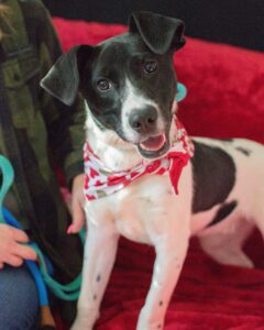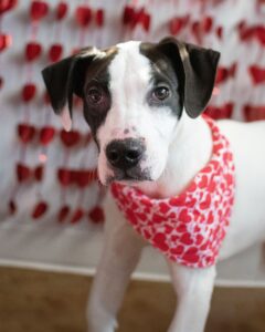 Chocolate and roses for Valentine’s Day? Booooo. That’s tired. That’s a cliche. You need something fresh. Something sweet. Something like… fruit! Orrrrrr… puppies! Meet Banana, Kiwi, and Apple. Six months old and each looking for their own individual Special Someone. Both black and white ones (Banana and Kiwi) are boys and Apple (tan and white) is a girl, so you’ve got a whole edible arrangement to choose from!