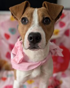 These kids are mystery mixes, around 25-30 lb each right now. We can’t make any guarantees about their adult size, except that they’ll be bigger than they are now and smaller than an adult bison. They’re smart, friendly puppies who sometimes need a little reassurance in new settings, but quickly decide that they want nothing more than to cuddle and play with you, their new best friend. They’ve been working on the training basics: leash walking, sits and stays, and general manners, and they’re doing a great job! Banana, Kiwi, and Apple are six months old, spayed and neutered, up to date on shots, and fully vetted.