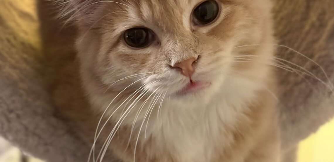 Is it that I’m the softest little dreamsicle cloud you’ve ever had the pleasure of touching? Or that I’m totally fearless, super-outgoing, incredibly charming, and love to play? I mean, I live with a gigantic dog in my foster home and think he’s the best thing since Neil Diamond. I’m great with other cats and kids. I’m an expert at turning strangers into friends. I charmed the vet clinic staff so successfully that they featured me in their holiday staff photo. Surely, that must be what they’re talking about when they say I’m “special!”  Wait. Hang on. That can’t be right. I’ve just been told that, while all that stuff is absolutely true and does, indeed make me special, the thing they’re referring to is… what? My POOP?! Come on, guys!  Okay, okay… let’s get this out of the way. Nobody wants to be known for their poop in any capacity, but this is important for potential adopters to know: when I was rescued, I was in rough shape: sickly and LOADED with fleas and parasites. That, combined with the heavy-duty meds needed to get rid of all my little unwanted passengers and friends, left me with an out-of-whack gut biome. The result? Trouble in poop city. I’ve had two fecal transplants (yes, that’s a thing!) and it’s helped a TON. I’m in good shape now, but I have to stay strictly on a prescription probiotic diet (Hills Biome) in order to keep it that way. Managing that in a multi-cat home might need a little creativity (my food is fine for other cats to eat, but it’s more expensive than grocery store brands), but we can hook you up with a cool space-age microchip-scanning food bowl that can help you out with that. I’m nothing if not accommodating.  Okay… as anyone who works with the public knows, having a stranger talk at you about their bowel movements when you very much did not ask is… awkward. Not usually the best way to start a beautiful lifelong friendship. I’d rather spend my time thinking about toys! I love to play and would REALLY love a dog or cat playmate. I really want to be best friends with my feline foster siblings, but they’re seniors and don’t appreciate my energy. I also love to be held and snuggled, especially when I’m calm and sleepy. Overall, I really am something special!  Because I’m in a foster home, I’m available to meet by appointment only. To start, please fill out an application at odas.org/feline and we’ll go from there!  My name is Marsh, I’m six months old, and I’m neutered, up to date on shots, and fully vetted.