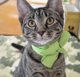 It's GREAT being a kitten, isn't it?! I wish everyone could have this much fun! My name is Pips, which is great for a kitten 'cause you can turn it into like one million different nicknames. Pippi, Pipsqueak, Pippopotamus, Pippi-Yi-Oh-Ki-Yay... the possibilities are endless. They put this bow on me so everyone knows I'm a girl, but frills aren't really my thing. I'm the kind of girl who, if I were a person, would come home with skinned knees and grass-stained clothes. I love to explore and investigate, chase bugs, sleep in sunbeams, and play with my friends! I'm very cat-friendly and, when