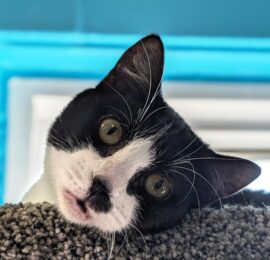 You might think that the ideal season for Dairy Queen is coming to an end, what with the chilly winds and all. But I disagree. I think Dairy Queen time is just beginning! Hi. I'm Dairy Queen. And it's time for me to shine. I'm adorable and outgoing. I love people and will roll over for belly rubs. Want a cat who will play with you and keep you entertained? I'm on it! I even get along with other cats. I'm a phenomenal cat, ready to be a perfect addition to any home. I've never really had the chance, though. I'm two years